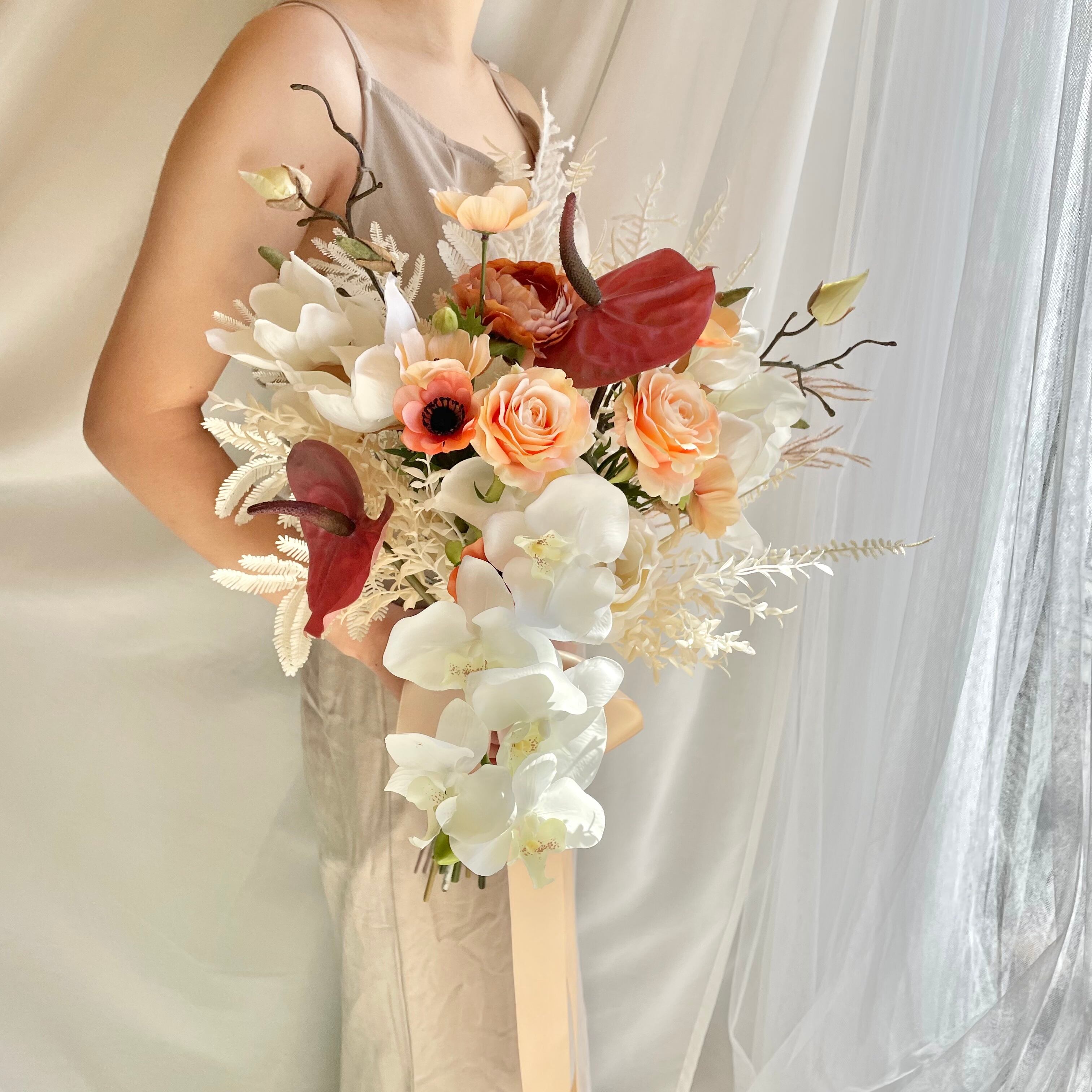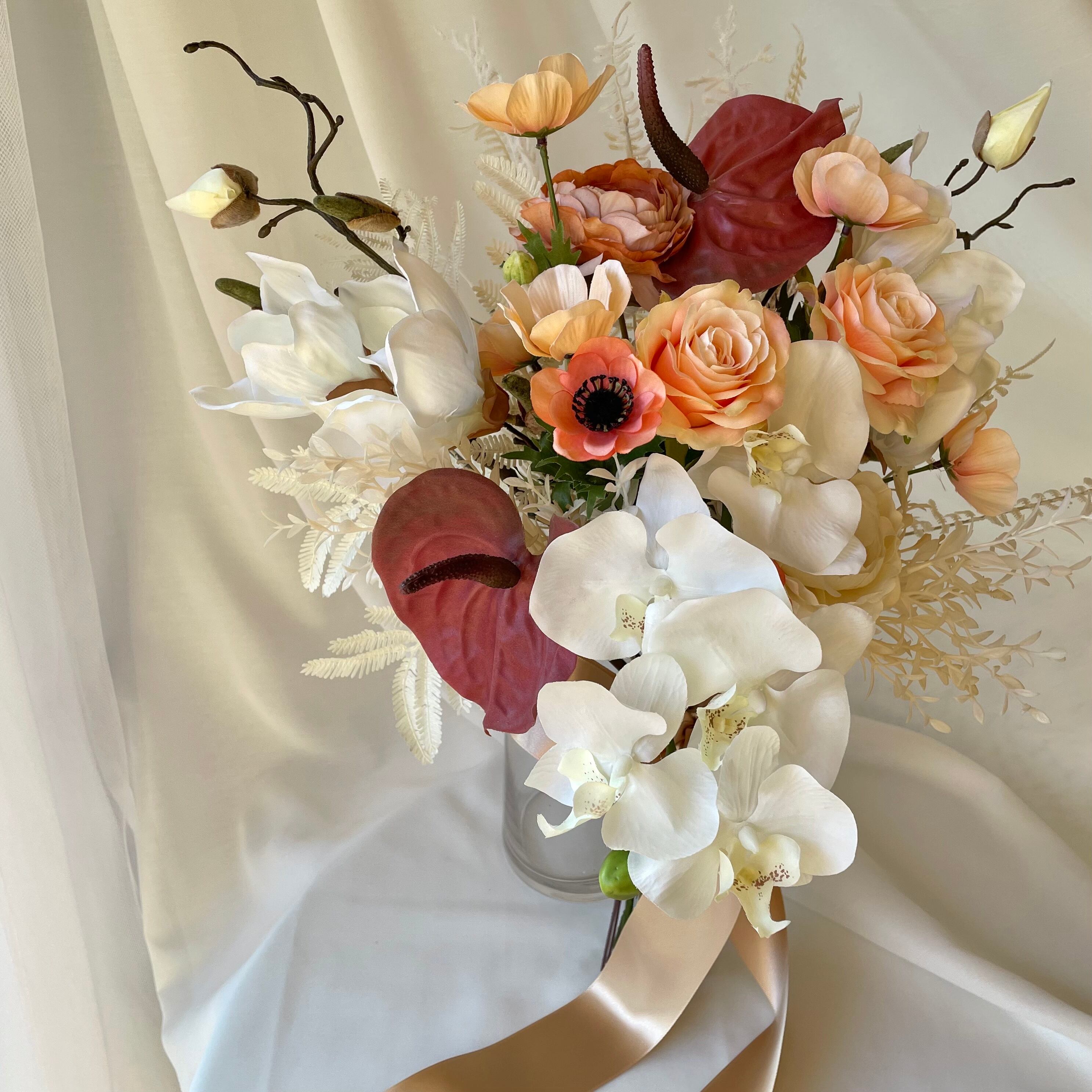 【残りわずか受注制作】ウェディングブーケ 韓国ブーケ ニュアンスブーケ 胡蝶蘭ブーケ アーティフィシャルフラワー